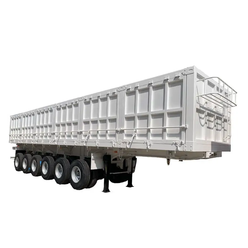 Side-dump semi-trailers are made of high-strength steel and have a maximum load capacity of 50 tons, enabling them to handle heavy bulk materials with ease and ensuring safe and reliable transportation every time.