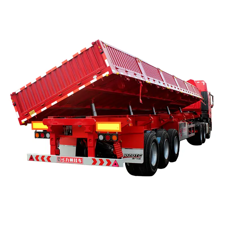 Side-dump semi-trailers are made of high-strength steel and have a maximum load capacity of 50 tons, enabling them to handle heavy bulk materials with ease and ensuring safe and reliable transportation every time.
