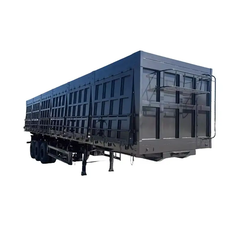 Side-dump semi-trailers are made of high-strength steel and have a maximum load capacity of 50 tons, enabling them to handle heavy bulk materials with ease and ensuring safe and reliable transportation every time.