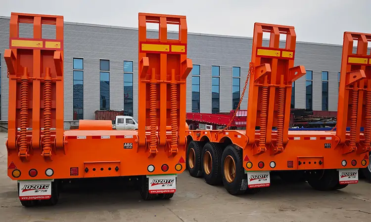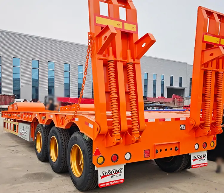 Our 3-axle low-bed semi-trailers stand out in the market for several compelling reasons. Firstly, they are constructed using MT700 high-strength steel, renowned for its exceptional durability and resistance to wear and tear, ensuring a longer service life even under the most demanding conditions. The incorporation of I-beams in the chassis design further enhances structural integrity, enabling these trailers to carry loads up to 80 tons with ease. Additionally, the spring-loaded ramps facilitate smooth loading and unloading of heavy machinery, while the LED lighting system, complete with protective covers, ensures visibility and safety during nighttime operations. The entire trailer undergoes an electrophoretic painting process, which not only provides a flawless finish but also offers superior corrosion resistance, extending the vehicle’s aesthetic appeal and functionality over time.